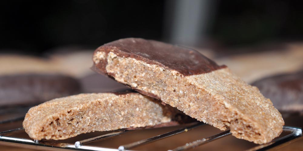 8) Dip the shortbread cookies into the chocolate and place on a sheet of waxed paper and leave to set.