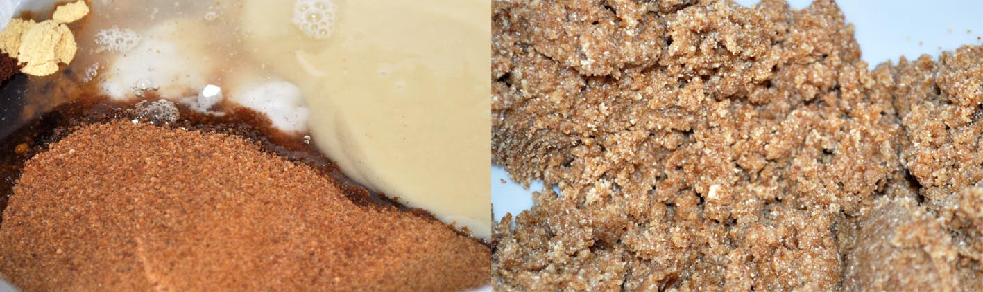2) Mix the macadamia nut butter, coconut oil, coconut sugar, maple syrup and vanilla extract together in a mixing bowl